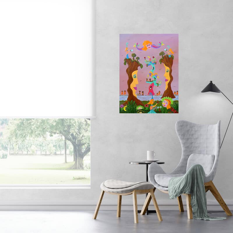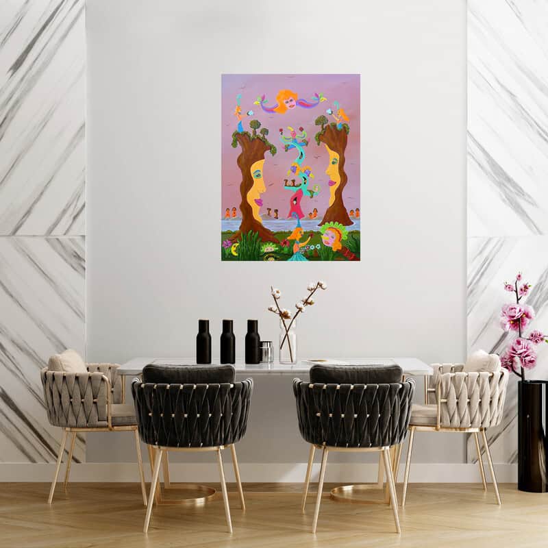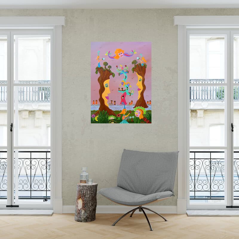 Dans cette fresque où la poésie se fait couleur, la nature n’est plus seulement un décor mais une entité vivante, vibrante, animée d’une douce exubérance. C’est un monde où le merveilleux surgit de l’ordinaire, un écho au Réalisme Imaginaire cher à l’artiste. Le Chant des Sylphes est une invitation à écouter l’invisible et à plonger dans un univers où l’onirisme tutoie la réalité.